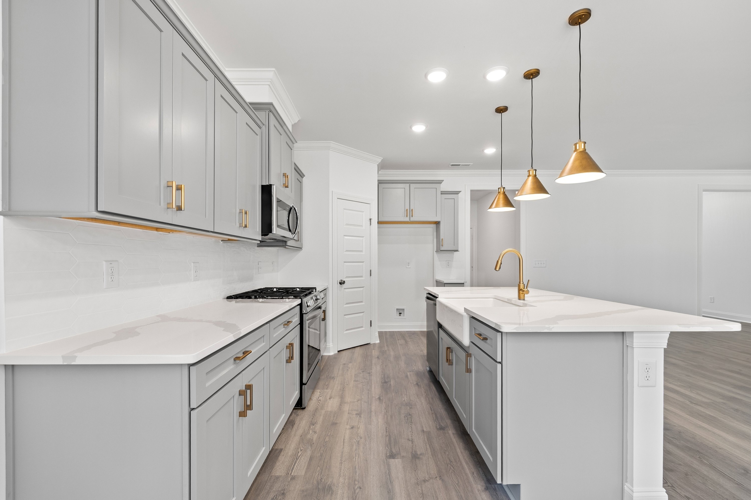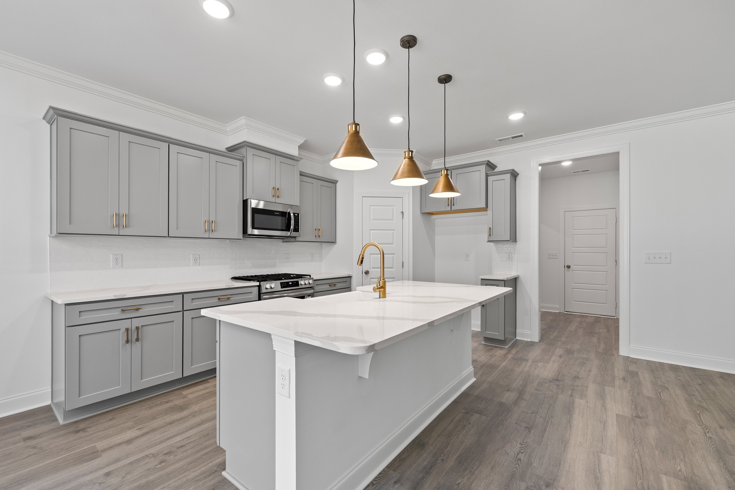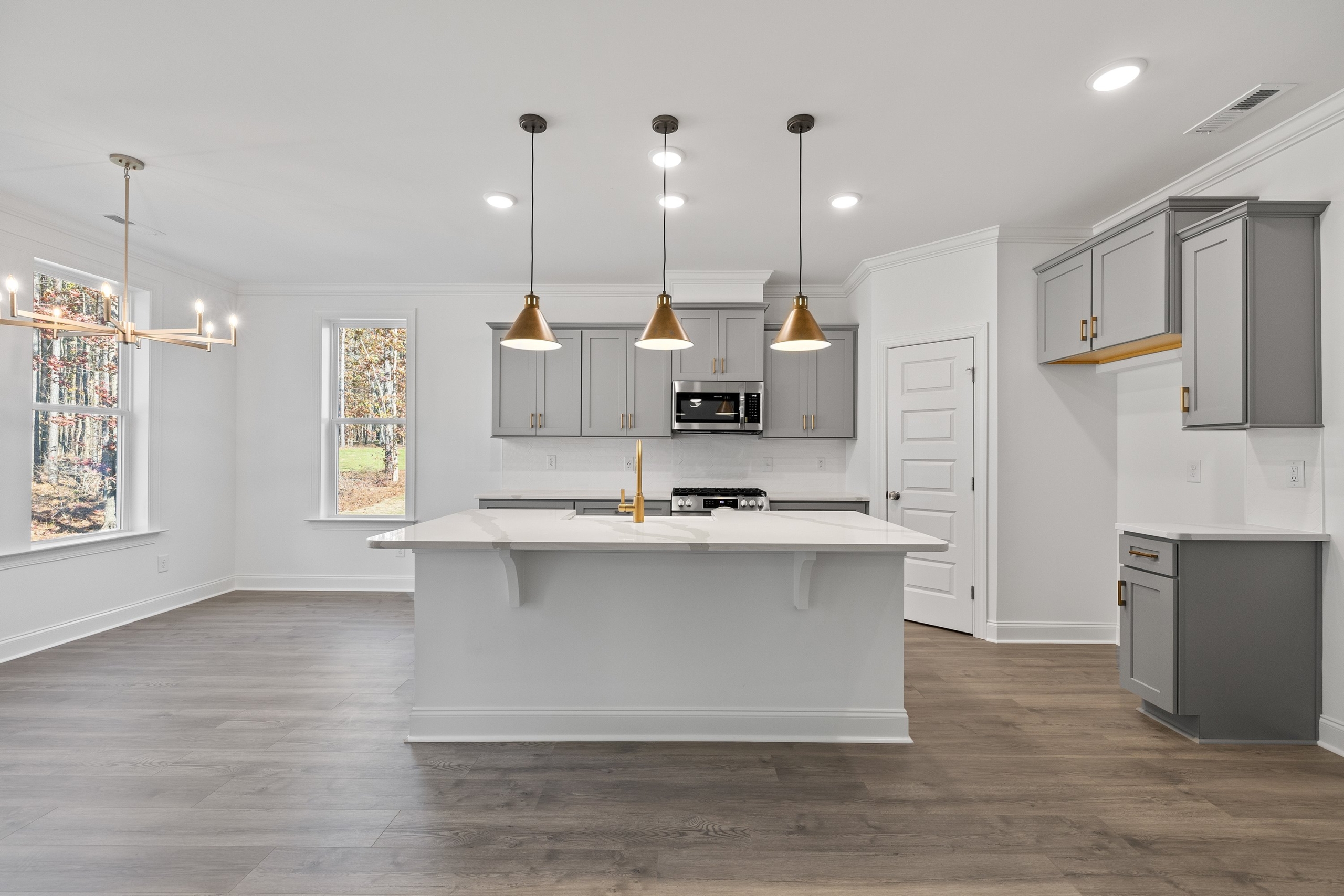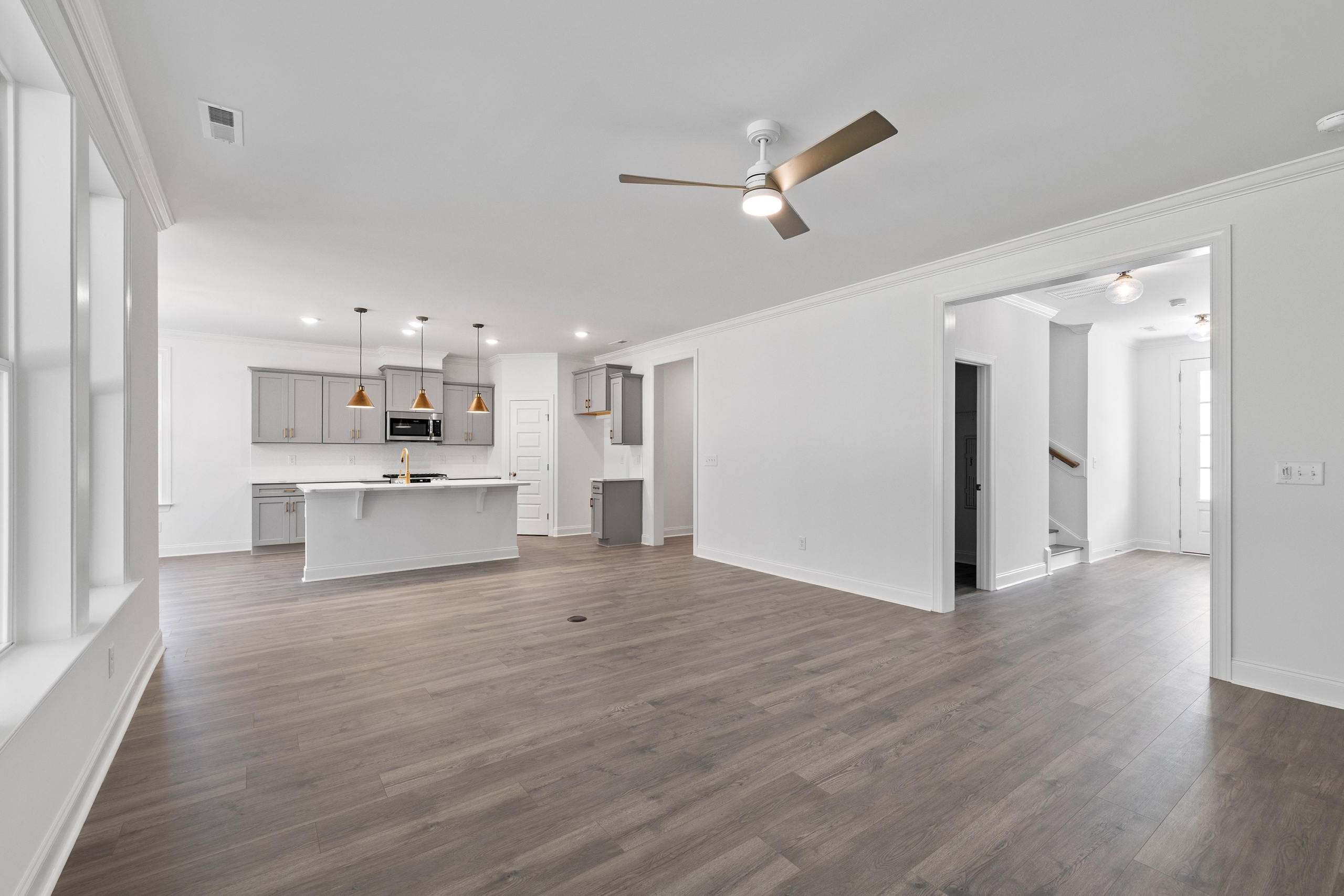 The open-concept main living area is highlighted by an oversized kitchen island, seamlessly connecting the chef’s kitchen, great room, and dining space. This bright and inviting layout is perfect for both everyday living and entertaining.