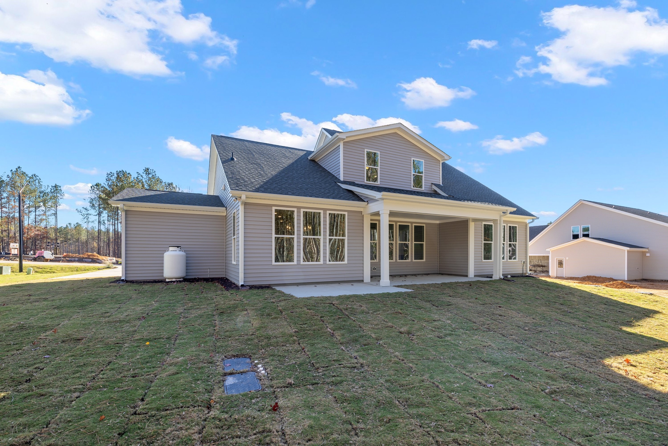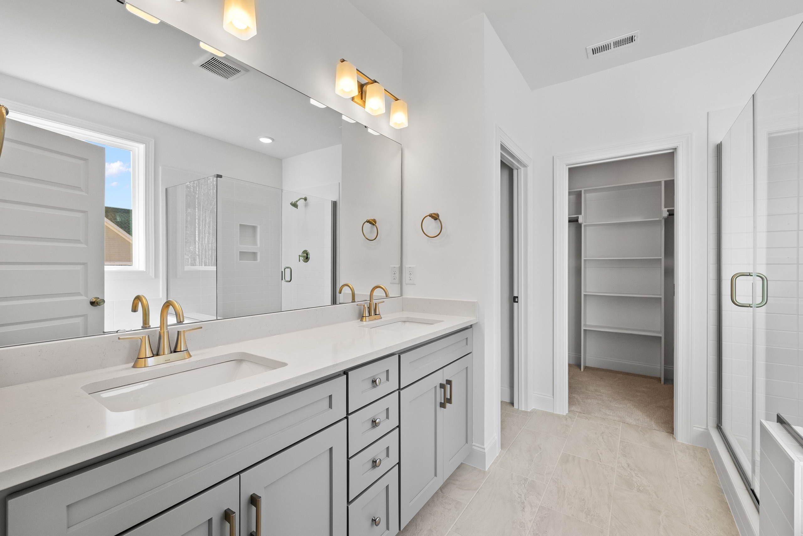 Enjoy the ease of main-level living with a spacious primary suite on the first floor, complete with a luxurious bath, dual vanities, a walk-in shower, and a generous walk-in closet. A first-floor flex room adds versatility and can be upgraded to a guest room with a full bath, ideal for hosting family or visitors.